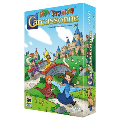 The streets of Carcassonne are filled with kids; the city has never been so alive! This version of the modern classic, Carcassonne, has been adapted to allow players of all ages to play together. Each turn, players place a tile to build the city. When they close a street with one or more kids of their color, they get to put their pawn on the board. The first to place all their pawns wins!