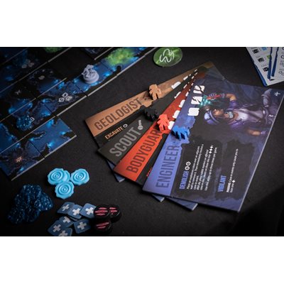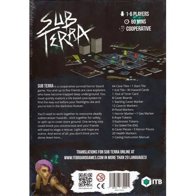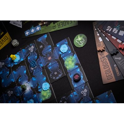 In Sub Terra players spend their turn exploring and revealing the tunnel system around them, attempting to survive the various perils of the cave, from floods and cave ins to gas leaks and scree. Players each have a role which gives them specialist abilities, such as an Engineer with dynamite to blast a new route or a Scout to find a route more easily.