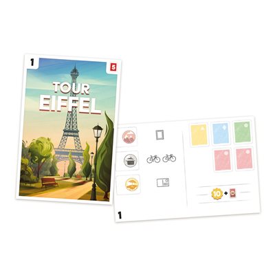 Hop on your bicycle and set out on a picturesque adventure, as you compete with your friends to enjoy the most unforgettable holiday! Designed for 1-4 players, Postcards is a family friendly game that takes you on a journey across France, filled with inspiring culture, stunning landscapes, and delicious local cuisine.