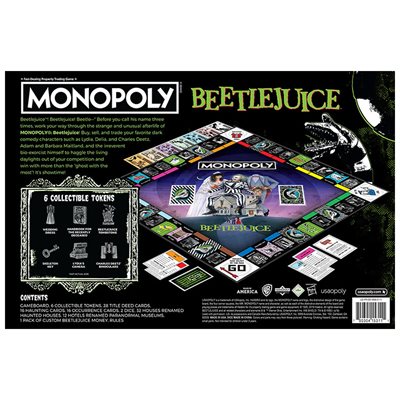 Before you call his name three times, work your way through the strange and unusual afterlife of MONOPOLY: Beetlejuice! Buy, sell, and trade your favorite dark comedy characters such as Lydia, Delia, and Charles Dietz, Adam and