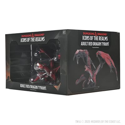 Sculpted in its newest form, the Huge-sized D&D Icons of the Realms: Adult Red Dragon Tyrant pre-painted miniature sits on a 75mm base, making it perfect for your next encounter. With an 8-inch wingspan, this quintessential dragon will dominate your table and collection.