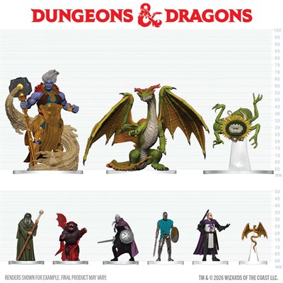 Dodge the morbid machinations of the Cultist of Myrkul, avoid falling prey to the shape-changing Beast of Malar, and find allies in the Purple Dragon Knight or Drow Harper Warrior Veteran. Each Booster Brick contains a diverse selection of pre-painted miniatures, ideal for building out the perfect population—wherever your journeys into Faerûn lead.