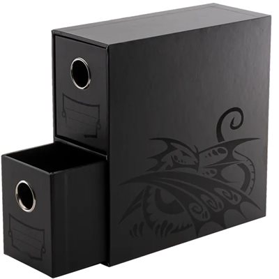 Each of the two drawers can hold 295+ single-sleeved cards, 4 Dragon Shield sleeve boxes or 11 Cube Shells. The drawers each have a foam divider that can be used to secure your collection. If you want extra dividers to organize your Fortress, you can find them here.