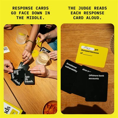 I Hate My Friends is the party game where roasting your friends isn’t just allowed, it’s the whole point. Let’s face it: jokes are way funnier when they’re about the people you know best. With personalized Setup cards and painfully accurate Response cards, your friend group is about to get absolutely roasted.