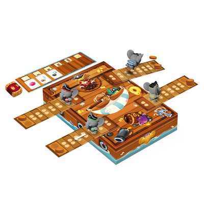 Search the captain's trunk and place weights on the end of your opponents' board to knock them down! But be careful, with each misstep, you move forward one space on your own board!