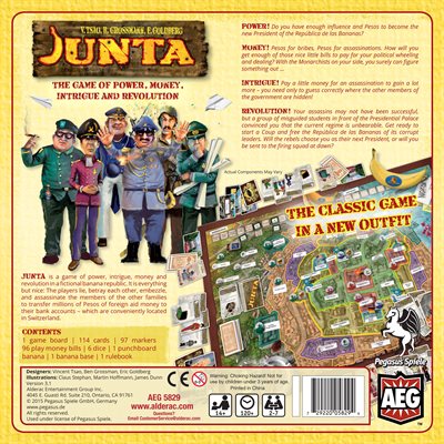 In the now legendary República de las Bananas, a corrupt military dictatorship rules whose members are only interested in money and power. In Junta , the classic board game, their means range from intrigue to revolution.