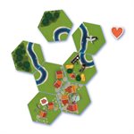 As in Dorfromantik – The Board Game, players work together to create an idyllic landscape by placing hexagonal tiles, while also fulfilling the requests of the townspeople and building rivers that meander for as long as possible. The more skilfully the tiles are placed, the higher the score at the end of the game. Over the course of the game, additional tiles and objective cards will be added as you progress on the high score table. You will also find a secret envelope with hidden contents that can eventually be unlocked.