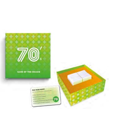 How much do you know of the 70’s, the era of disco music, afros and bell bottom pants? This entertaining game will test your knowledge in five fun categories. Right answer earns you a card and the first player to collect 5 cards wins. The game has eyecatching and colourful design and it comes with simple rules make playing easy and fast.