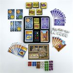 In Alhambra, players are acquiring buildings to be placed within their Alhambra complex. The money in Alhambra comes in four different currencies and is available in the open money market.