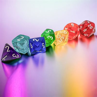 This set is helpful for beginner RPG players! Each die is a different color so that the DM can simply say the color of the die if the player does not understand the polyhedral shapes yet.