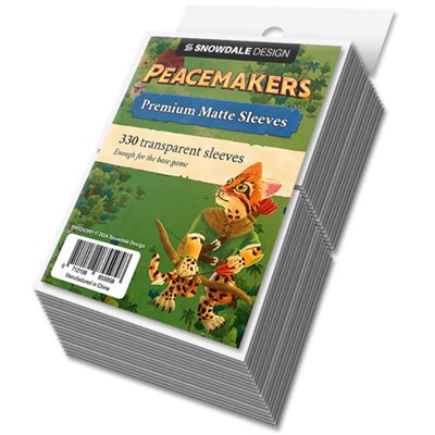 Transparent tight-fit premium card sleeves, with matte non-glare finish. Contains 330 sleeves, enough to sleeve the whole game and the promo pack, with spare sleeves left over.