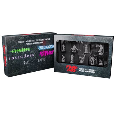 9 alternate miniatures for each of the killers from Series 2. Big Bad Wolf, Bag Head, Evomorph, Zeke, Strong, Trish, Tough, Ratchet Lady and Fast.