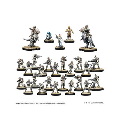 This Echo Base Defenders Special Edition Starter Set contains a 600-point Recon-level army, including a Special Edition alternate sculpt General Leia Organa. It also includes all the dice, templates, tools, and tokens a player needs to begin playing their first games of Star WarsTM: Legion.