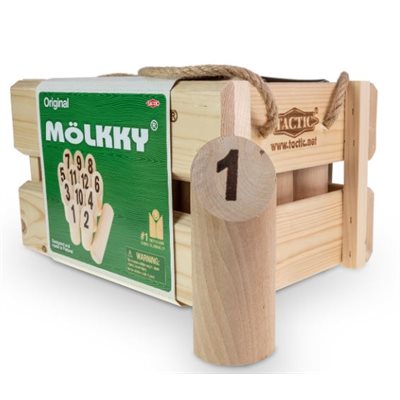 Mölkky is the number one outdoor game in the world. To win the game you must score 50 points exactly – go over 50 and your score will go down to 25. Mölkky is  beautifully crafted with real birch tree wood. Designed and manufactured in Finland. To play Mölkky, all you need is an outdoor space, a few friends or a family, and a set of Mölkky pins. No physical strength is required. The Original  Mölkky comes with a sturdy wooden crate.
