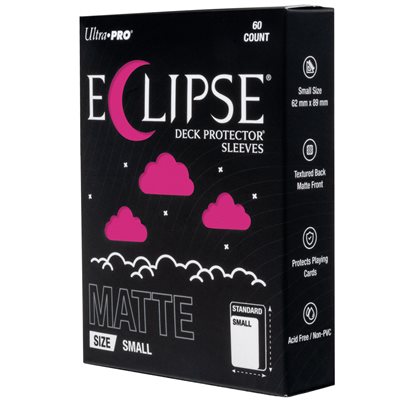 The next evolution of Ultra PRO’s legendary ECLIPSE® DECK PROTECTOR® sleeves is here. Experience the enhanced texture, optimized shuffle feel, and the rigorously tested, consistent quality of the latest ECLIPSE® formulation. Designed for competitive play and archival collections, ECLIPSE® DECK PROTECTOR® sleeves feature fully-opaque backings and split-resistant seals. ECLIPSE® DECK PROTECTOR® sleeves are available in matte and gloss fronts, standard and small sizes, and 10 vibrant colors.