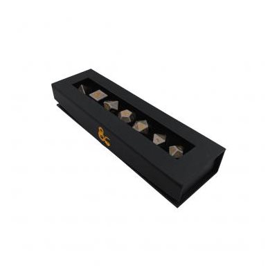 Ward off enemies on your next adventure with the commanding roll of these official Dungeons & Dragons Heavy Metal dice! Made from the same heavy, zinc alloy material as the Heavy Metal D20 sets, rolling these dice will send a rumble through the realm! The set includes one each: D4, D6, D8, D10, D12, D20, and a Percentile Die - all the dice you need for your next D&D adventure!