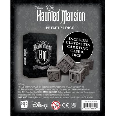 • Collectible Disney The Haunted Mansion 6-sided dice set including collectible tin carrying case