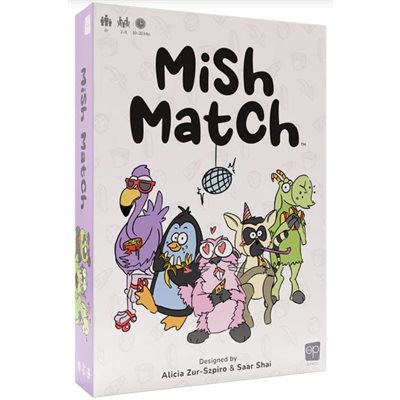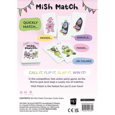 Get in the mix with Mish Match, the fastest fun you’ll ever have! In this competitive, fast-action party game, be the first to spot and slap matching theme from a variety of Animals, Colors, Foods, and Moods!