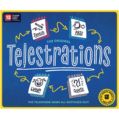 The Telestrations 12 Player Party Pack is the same award-winning sketch, pass & guess fun as The Original 8 Player Telestrations; only now the outcomes can go even further sideways with more players and 600 new words!