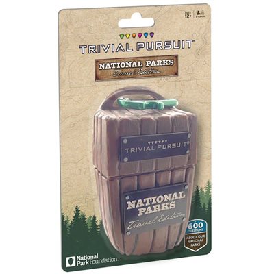 Journey through the National Parks of the United States of America with TRIVIAL PURSUIT: National Parks. Trivia questions from 100 years of National Park history will challenge travelers, U.S. history buffs, students and families. Roll the custom die to pick from six categories: Natural Wonders, Battlefields and Historic Sites, Cultural Heritage, Science and Nature, Wildlife and Wildcard. First player to collect 6 cards wins! Hook up the handy travel case by the included carabiner clip for a quick-play trivia game anywhere you’re exploring!