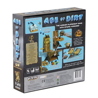 In Age of Dirt, you’ll control of a small tribe at the dawn of civilization, and send out your workers in the hopes of collecting the resources you need to grow and thrive. Unfortunately, they won’t always listen. Before collecting resources, you’ll have to place your workers, and any of your opponents’ workers in the same space, into a tower, and only some of them will come out. The rest will have to wait to be knocked loose on a future turn.