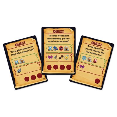 Each round a quest is revealed with a unique set of required and forbidden items, and you only have seconds to fill your storage board with as many of the required items you can, while avoiding the forbidden ones. Once everyone is done, you take turns defending your choices, then score based on how well you prepared, and how few empty spaces are left over. The best prepared adventurer wins!