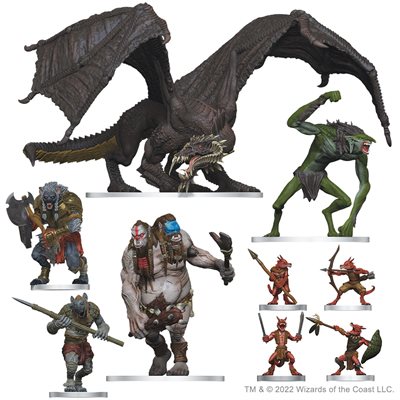 This core set includes everything two players need to play, including twelve characters from two different factions (Harpers and Zhentarim), a horde of monsters, and an immersive campaign that sends rival parties deep into the depths of a ruined keep to confront a mighty black dragon.