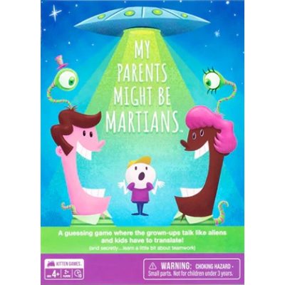 Les enfants sont des humains, les adultes sont des martiens, et tout le monde rit ! Le but est pour les Martiens de faire deviner un mot à leurs amis humains en utilisant uniquement des indices avec des mots d'une seule syllabe. Les humains doivent travailler ensemble pour donner un sens à votre discours stupide avant que le temps ne soit écoulé. Ce jeu est un moyen extraordinaire d'améliorer le travail d'équipe et les compétences linguistiques de vos enfants. Parfait pour les petites soirées de jeu en famille ou pour briser la glace lors de grands rassemblements.