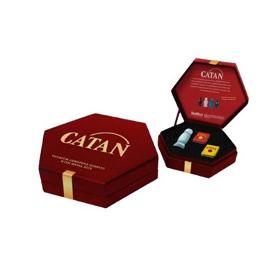 FanRoll is thrilled to introduce the perfect premium upgrade to your CATAN game. This premium stone robber is accompanied by a pair of solid metal dice forged in the official CATAN dice mold.