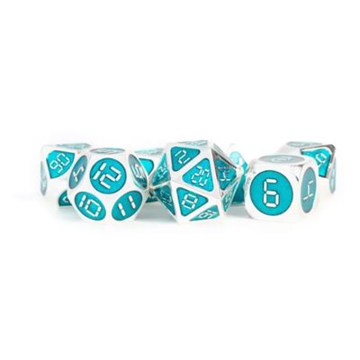 Dice: 7 pc: 16 mm: Metal: Silver with Teal Enamel (EN)