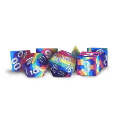 Dice: 7 pc: 16 mm: Sharp Edge Silicone Rubber: Rainbow (EN)