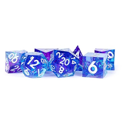 Our handcrafted, sharp edge resin dice are hand polished to keep their beautiful sharp edges. These dice are infused with beautiful glitter flakes. Because these dice are not tumbled, they are more precise than mass produced resin dice. Its hard to beat the value in our resin dice sets. Beautiful and affordable, these are great Critical Reinforcers to our metal dice. Each 16mm polyhedral set comes with 7 dice (d4, d6, d8, d10, d10 (00-90), d12, and d20).