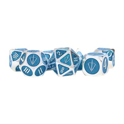 Dice: 7 pc: Metal: Tales of the Valiant: Silver with Light Blue Enamel (EN)