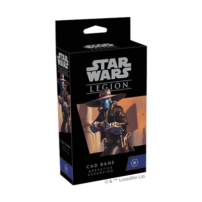 This expansion puts all of Cad Bane's skills at your disposal and gives you plenty of options for assembling the unpainted hard plastic miniature you find in it. In addition to being able to choose whether Cad Bane enters battle with his signature wide-brimmed hat, you can also build the miniature with his dual LL-30 blaster pistols or with a single pistol and one hand activating his electro gauntlets. Rounding out this pack are a unit card, six upgrade cards, and Cad Bane's three signature command cards.