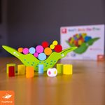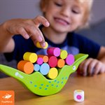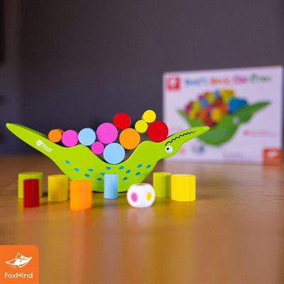 Ne mettez pas le crocodile en furie! Placez les pièces de couleurs en bois une à une sur le ventre du crocodile tout en le gardant bien balancé. Mais faites attention, si vous n’êtes pas précis, vous allez faire basculer le crocodile et les pièces en bois tomberont et vous devrez tout recommencer.