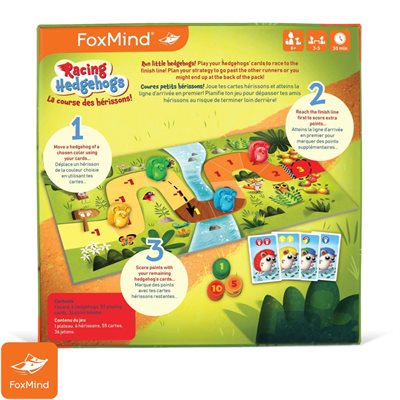 La course est lancée! Les participants jouent des cartes pour faire avancer les hérissons. Lorsqu’un hérisson franchit la ligne d’arrivée, la course prend fin et les joueurs marquent des points avec les cartes restantes en leur possession. Les joueurs doivent à la fois jouer des cartes qui feront leur hérisson favori avancer tout en conservant leurs meilleures cartes pour maximiser leurs points. Quelle sera votre stratégie?