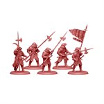 Bien qu’ils soient capables de mener des assauts de front, les Hallebardiers Lannister excellent dans les formations et les positions défensives. Un ennemi qui charge une ligne de Hallebardiers retranchés prend un risque considérable. Il faut toutefois savoir les protéger des attaques de flanc ou des tirs ennemis mais, lorsqu’ils sont employés à bon escient, les Hallebardiers peuvent faire des ravages.
