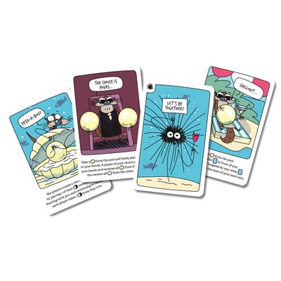 Otters est un jeu de cartes rempli de loutres, d'oursins et de folie, Ce jeu d'ambiance vient dans une boite compacte, parfaite pour transporter dans tous vos partys. Avec un style de jeu unique qui inclut de l'élimination de joueurs, du "prends-ça" et la méchanique de la patate chaude réinventée, chaque ronde promet d'être différente de la précédente. Un jeu rempli d'Excitation qui vous fera rire aux éclats...jusqu'à ce que vous soyez éliminé!