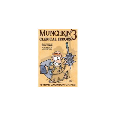Munchkin 3 - Clerical Errors has 112 more cards for the best-selling game of killing monsters and taking their stuff. Play a new race: Gnomes! Try on the Bard class. Face the Tequila Mockingbird, the Bad Ass, and the dreaded Auntie Paladin! Equip yourself with amazing items like the Chainmail Bikini and the Stab-A-Matic... and show them who's the mightiest, munchkinest dungeon delver of them all.