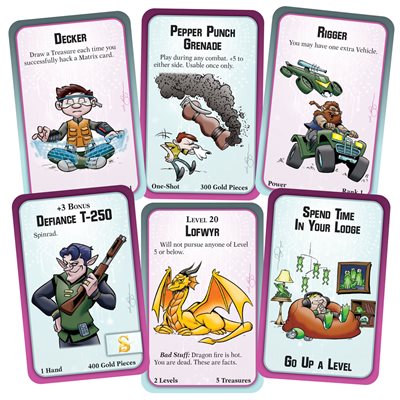 In addition to all the great Door and Treasure cards you expect in Munchkin, this set introduces the Matrix, a series of cards with additional gameplay goals that can be used to win the game in a whole new way!