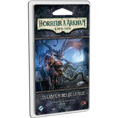 Dans Les Labyrinthes de la Folie, un scénario inédit de 80 cartes pour Horreur à Arkham : le Jeu de Cartes, trois groupes d’investigateurs séparés sont enlevés par un mystérieux ennemi et forcés à participer à de cruelles expériences. Chaque groupe affronte ses propres épreuves, mais tous doivent travailler main dans la main pour s’échapper. Ce scénario peut être joué par un groupe unique de 1 à 4 investigateurs en tant que scénario indépendant ou comme une mini-campagne de trois scénarios. Il peut également être joué simultanément par trois groupes d’investigateurs dans un mode Multijoueur Épique qui permet de réunir jusqu’à douze investigateurs.