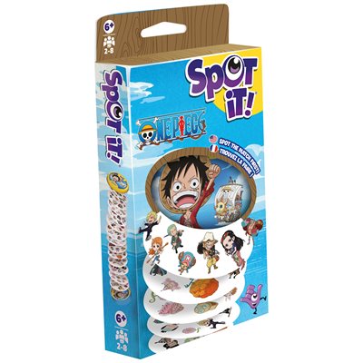 Spot it! One Piece est une édition thématique du célèbre jeu d’observation qui met votre vitesse et vos réflexes à l’épreuve. Comme dans l’original, il y a toujours un – et un seul – symbole correspondant entre deux cartes quelconques. Avec des illustrations sur le thème de One Piece, le jeu conserve le même gameplay rapide et amusant adoré par des millions de personnes. Facile à porter, rapide à jouer, et infiniment rejouable - Spot it! One Piece est parfait pour se lancer dans de nouvelles aventures.