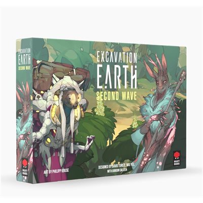 Second Wave is the first expansion for Excavation Earth, introducing two new races - the Collectors and the Influencers - along with new game-play elements and ways of scoring. The Observation Barge, which lets you further manipulate the market demand for artifacts and score points at the end of the game. Achievements add a whole new way of scoring by completing set goals and Racial Wildcards give each race their own, more powerful action card to boost their round!