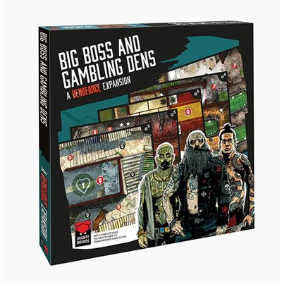 Big Boss Dens come into play when a Big Boss is discovered. Each gang have their own Big Boss Den that is designed for the abilities and flavor of that specific gang. Big Boss Dens are tough to beat, but reward the player with more victory points and wild tokens than even the toughest dens in a standard game of Vengeance.