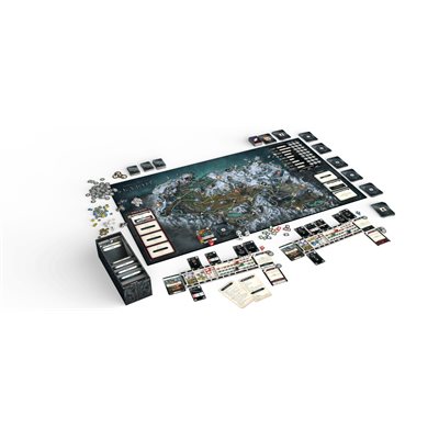 The game board represents the province of Skyrim. Players move their characters — represented by 32mm scale plastic miniatures — across the region, visiting Strongholds, exploring dungeons and meeting interesting characters as the story unfolds. But they are not the only ones there; roaming monsters appear, blocking roads and threatening the peace in Skyrim. Several game effects could lead to the fall of a Stronghold so players need to keep an eye on the state of unrest and the active dangers across the board.
