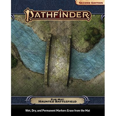 Pathfinder Flip-Mat: Haunted Battlefield measures 24" x 30" unfolded, and 8" x 10" folded. A Flip-Mat's coated surface can handle any dry erase, wet erase, or even permanent marker. Usable by experienced GMs and novices alike, Pathfinder Flip-Mats fit perfectly into any Game Master's arsenal!