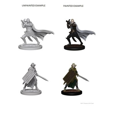 This Pathfinder Battles Deep Cuts Unpainted Miniatures: Human Female Paladin comes with 2 diverse, highly-detailed figures, pre-primed with Acrylicos Vallejo primer and includes deep cuts for easier hand painting. The packaging of each different set will display the minis in a visible format.
