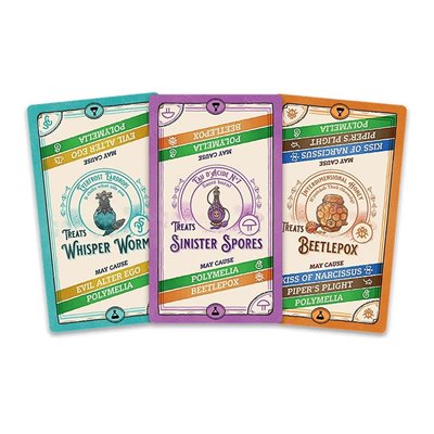 Vous êtes maintenant plus près de la victoire, mais attention ! Chaque Remède contient une liste d'effets secondaires (d'autres Hex) que vous risquez désormais de recevoir des autres joueurs lors de leur tour.