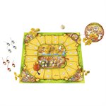 In Viva Topo!, players attempt to advance their mice (pieces) from the start to any of various goals. The further the goal, the more cheese (points) it is worth. Pursuing the mice is the cat that removes the mice from the game should it catch the mice.