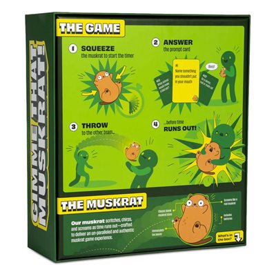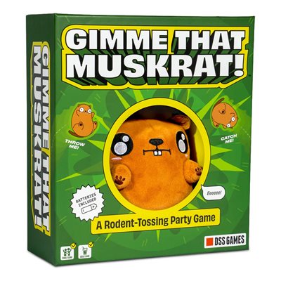 Gimme That Muskrat : un jeu de société où l'on se passe un rongeur dont vous ne soupçonniez pas avoir besoin… jusqu'à présent ! Mettant en scène un rat musqué électronique nommé Marvin, ce nouveau jeu est loufoque, absurde et amusant pour tous, de 8 à 88 ans et plus. Ce jeu plein d'énergie combine le frisson du jeu de la patate chaude avec des défis qui exigent de réfléchir vite.